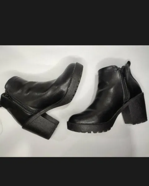 Combat Boots Negras. Tienen un pequeño detalle, a la bota izquierda se le cayó el estoperol dorado (se muestra en la primer foto) pero se le pude quitar a la derecha y no se nota.Tacón 7cmLas usé unas 3 veces