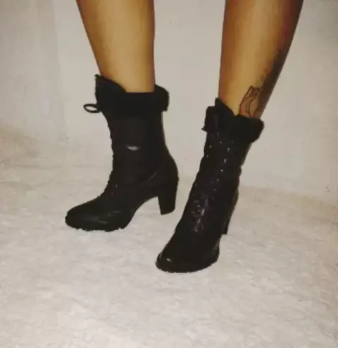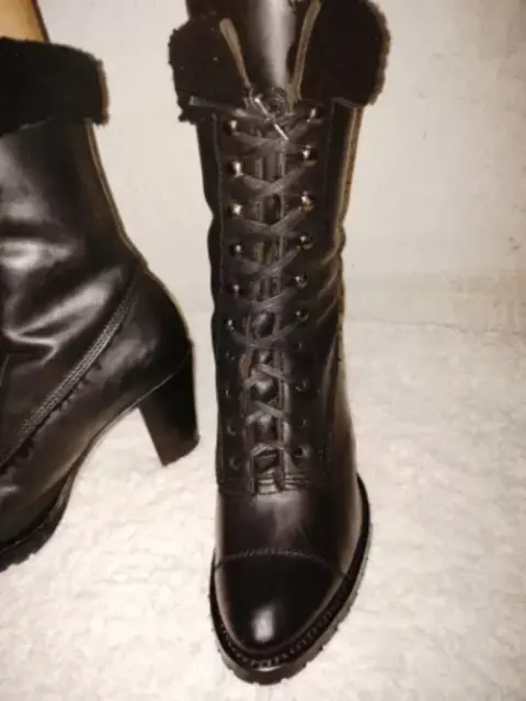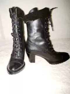 Botas negras con agujetas, forradas super calientitas, tacon ancho y muy cómodo de 8cm talla 4 1/2 o 5 si no tienes el pie muy ancho😍