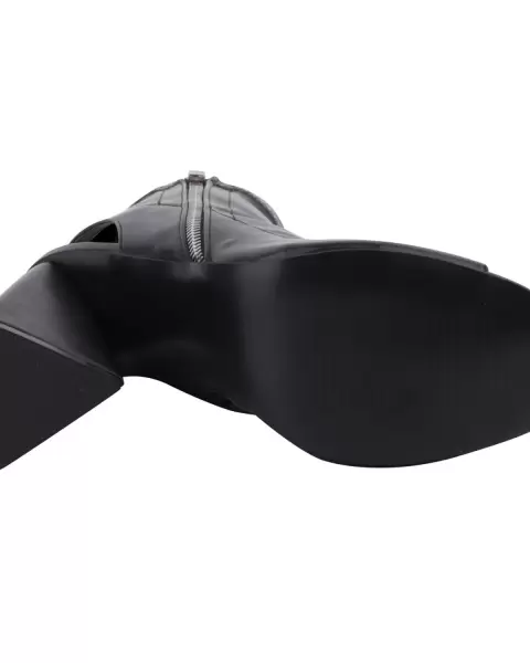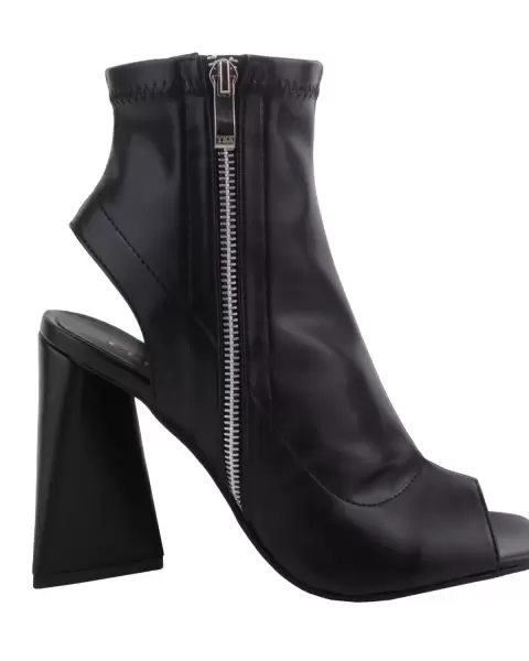 HERMOSOS BOTINES NEGROS🖤✨. Zapatilla Cklass con puntas abiertas para dama tacón triangular 11 cm en color negro, diseño liso con accesorio de cierre, ajuste mediante cierre interno, elaborado en piel sintética, plantilla de piel natural porcino, cómodos y elegantes.
