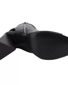 Zapatilla Cklass con puntas abiertas para dama tacón triangular 11 cm en color negro, diseño liso con accesorio de cierre, ajuste mediante cierre interno, elaborado en piel sintética, plantilla de piel natural porcino, cómodos y elegantes.