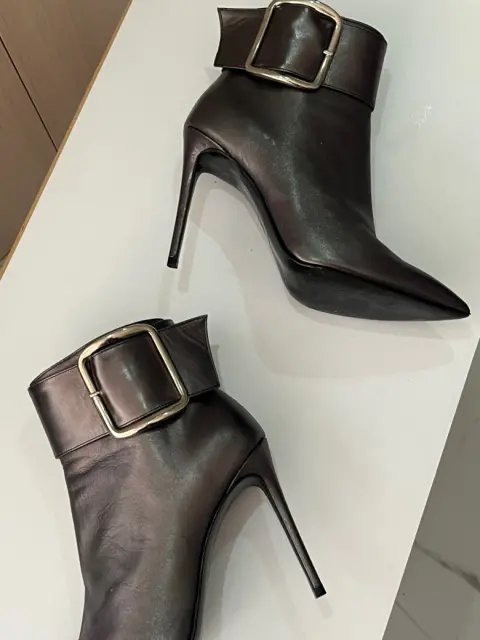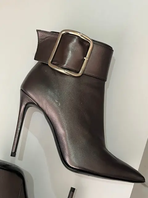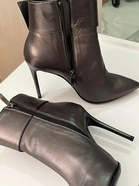 Descripción:Hermosos botines platinados. Marca Ivonne, tacón delgado, talla 4., altura de tacón 9 cms