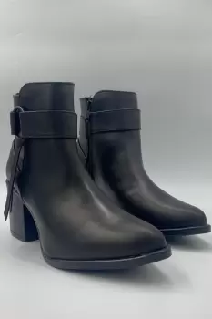 OFERTA BOTIN DAMA. Presentan un diseño de color negro, ideales para que los combines con la mayoría de tus atuendos y luzcas siempre moderna, cuentan con detalles en los costados. Cuenta con tacón de 7.5 cm.Además, te ofrece una confección de material sintético, por lo que usarlos será de lo más cómodo y seguro. ¡Adquiere tus botines ahora mismo!