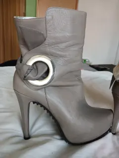 Botines piel color gris-arena, altura de tacón 12 con plataforma, hebilla color plata super cuidados sólo seusó un día. número super cómodos