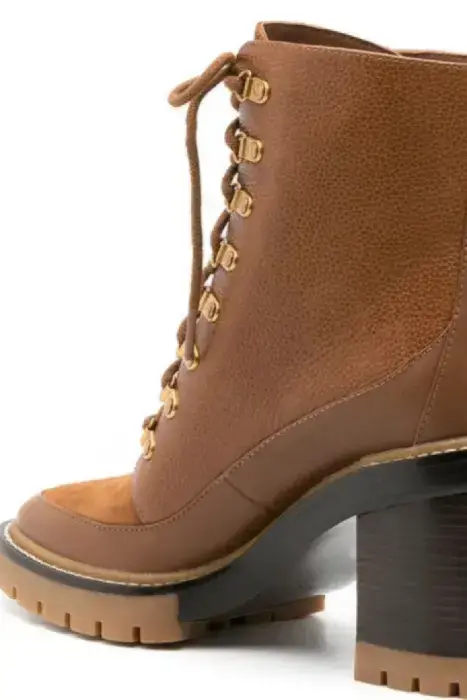 De la collection icónica de Tory Burch: los botines Miller Lug Sole son utilitarios, elegantes y versátiles. Mezcla de piel y gamuza, con ojales de latón y un tacón de bloqué alto, genial para vestir con faldas y vestidos midi.