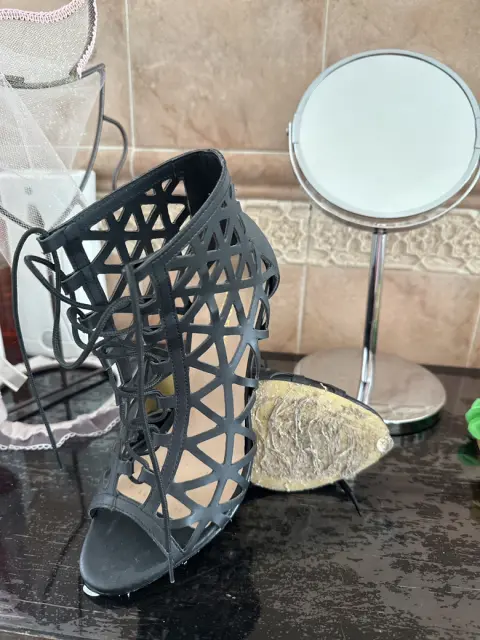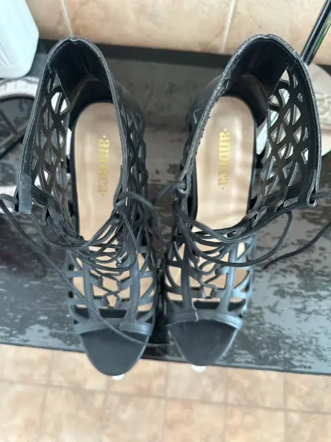 Zapatillas abiertas. Color negro, con agujeta, completamente abiertas, marca Andrea, número 25, seminuevas