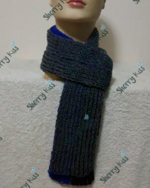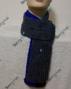 Bufanda bicolor, doble vista, reversible. Tejida con 2 colores diferentes de estambre (Un lateral Gris oscuro, lateral posterior Gris claro).Otra: Gris medio/Azul rey.Las mostradas no tienen flecos pero se le pueden incluir.Gracias por tu tiempo!