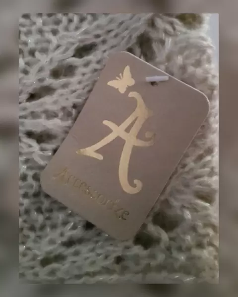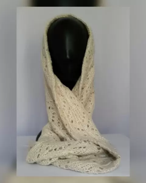 Bufanda infinita en tejido de punto c/estructura color TRIGO con hilo tono PLATA. Medidas cms: 41.5 x 136. 96% acrílico, 2% poliéster, 2% fibra metalizada. Para lavado en casa.