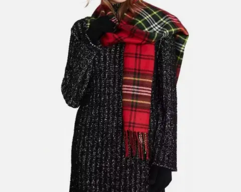 BUFANDA LARGA,MARCA STEVE MADDEN,CUADROS,MIDE 52 CM X 191.5 CM, NUEVA