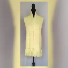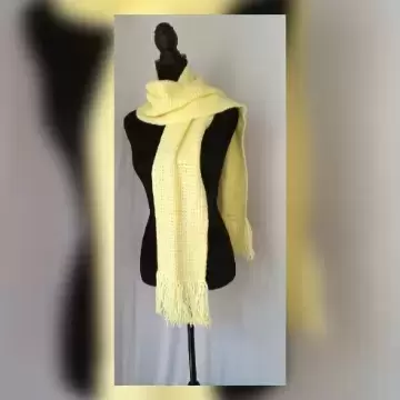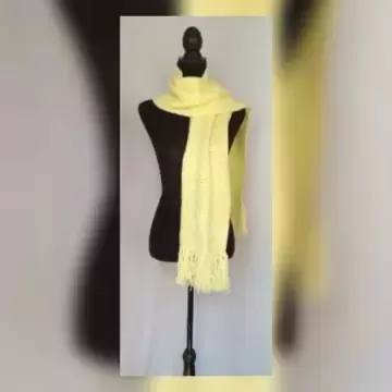 Bufanda en tejido de punto color AMARILLO NARCISO con aplique de flecos. Unitalla. Dimensiones cms: 21 ancho, 183 largo. 100% acrílico. Para lavado en casa.