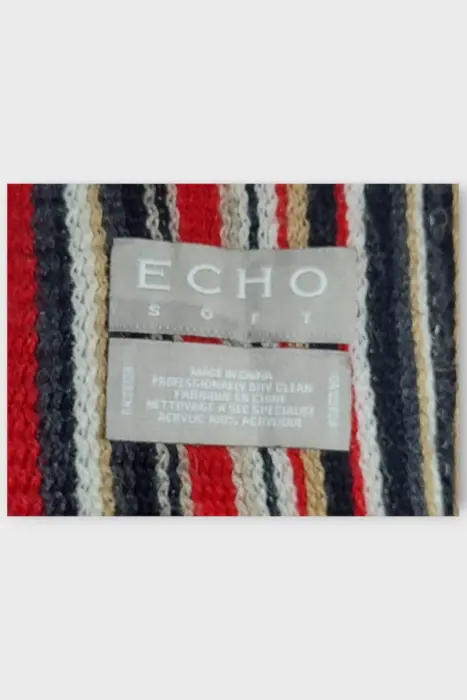 ECHO Bufanda Acrylic Multicolor. ECHO Bufanda Acrylic MulticolorMarca: ECHOOrigen: ChinaMaterial: 100% AcrylicTalla: UnitallaEstilo: RayadoPatrón: RayasColor: MulticolorAncho: 21 cmLargo: 260 cmArticulo de USO en excelente estadoLo que ves es lo que comprasAclara todas tus dudas antes de compra
