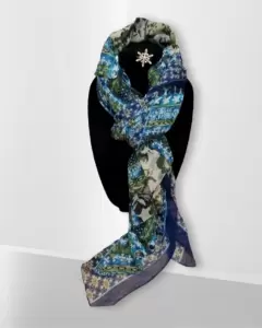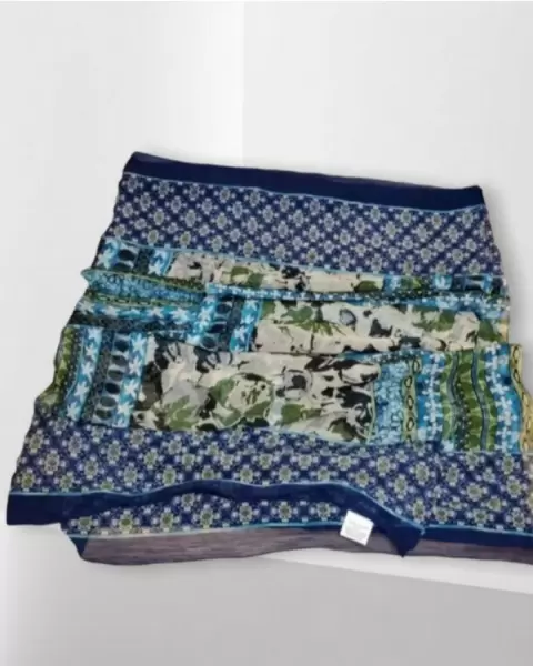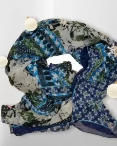 Bufanda/chal de poliéster con estampado clásico de moda para mujer, color azul floral Diseño de estampado de lujo, tela liviana que combina perfectamente con el estilo de verano, medidas extragrandes 44" de ancho x 74 de largo, hecho de 100% poliéster, viene nuevo sin etiqueta como mercancía de liquidación en buenas condiciones.
