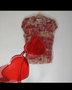 2x1 camisa y lentes de corazón. ❤️El amor está a la vuelta de la esquina...o en tinder.😸Camisa de manga cortita, transparencia y con encaje rojo. Es stretch (se estira)*Llevate los lentes de regalo ¡Se acerca san valentin! ❤️T:Ch-MMedidas Axila 48cm (54cm estirada)Largo 57cm enfrente 64cm atrás