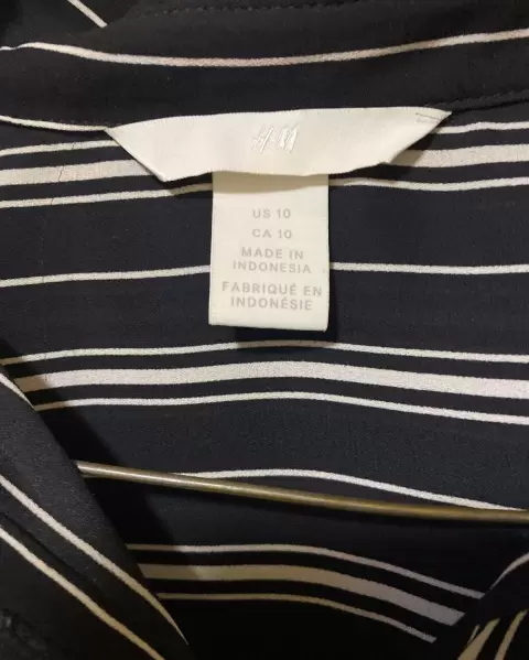 Blusa/camisa de vestir, negro con rayas blancas. Cuello, ideal para un traje sastre. Tela fresca y manga larga. Con botones al frente y en las mangas.