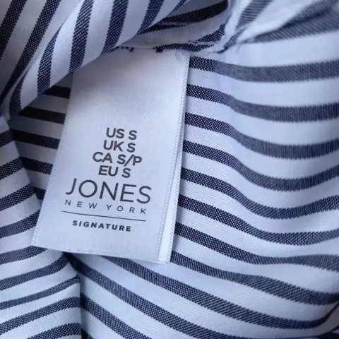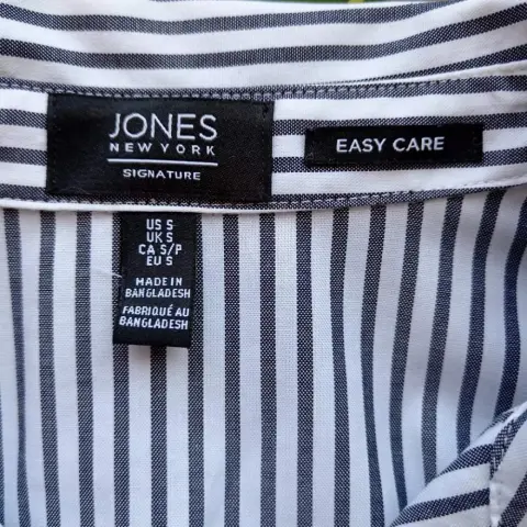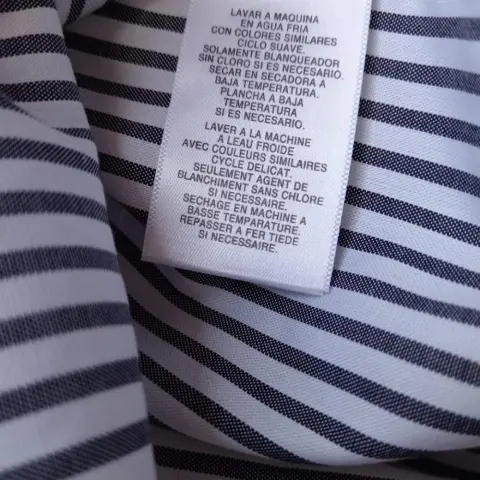 Blusa de botones rayada blanca con rayas grises, excelente calidad, está como nueva