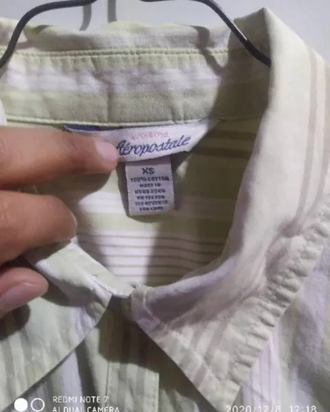 Blusa de lineas Aéropostale. Blusa formal de rallas verde con blanco, cuenta con una bolsa en el lado izquierdo la cual presenta un detalle bordado (mariposa), se encuentra en muy buen estado.