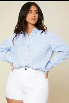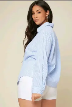 Blusa estilo camisa, linda y ligera. Moldea una buena figura la tela es con delgadas líneas blancas y azul cielo. La vendo pues me equivoqué y la pedí doble. Medidas en la última foto