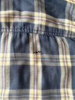Camisa a cuadros Abercrombie. Camisa manga larga a cuadros, tiene mancha en la espalda se ve en la foto.Talla: S Medidas: 37 cm hombros, 47 cm axilaY 61 cm largo.