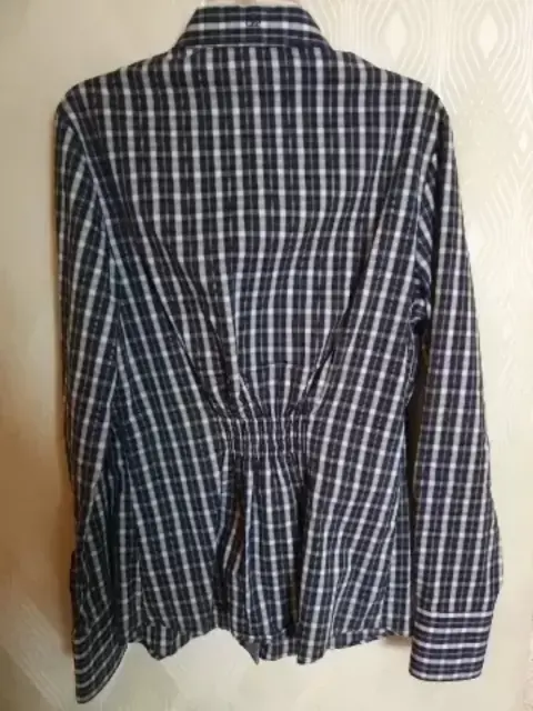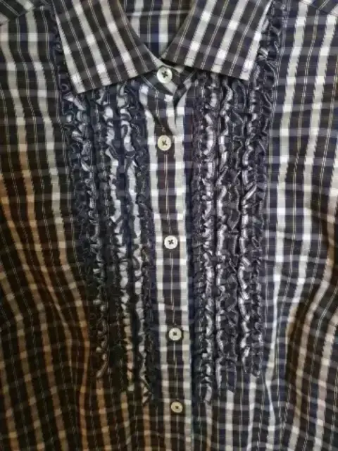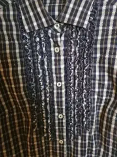 Camisa a cuadros, talla M, Chester&Peck. Tiene escarola en la parte de enfrentr y un resorte en la parte de atrás para resaltar la figura.43 cms de axila a axila65 cms de hombro a cadera
