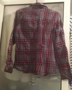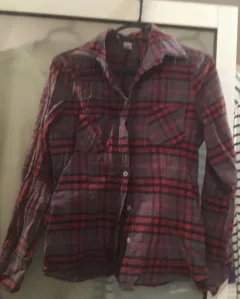 Camisa a cuadros rojo y violeta de franela manga larga juvenil muy linda te encantara sin detalle en exelente estado