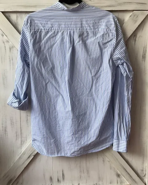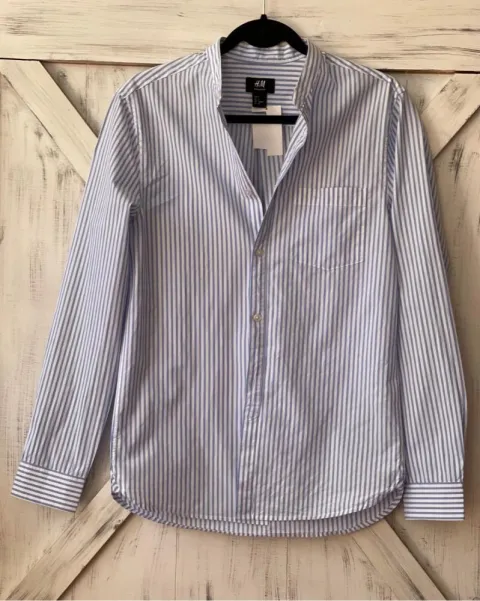 Camisa a rayas H&M. Talla: S, blanca con rayas azules, cómoda y fresca, 100% algodón. Sin detalles.