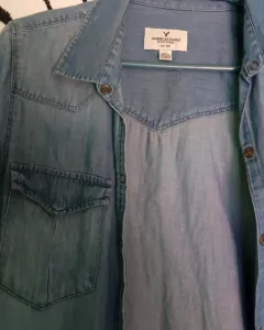 Camisa American Eagle. Camisa larga de mezclilla.Sin detalles.