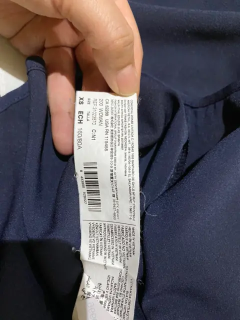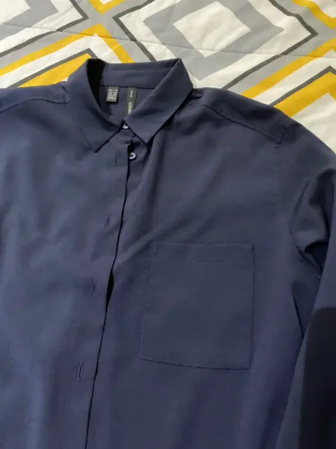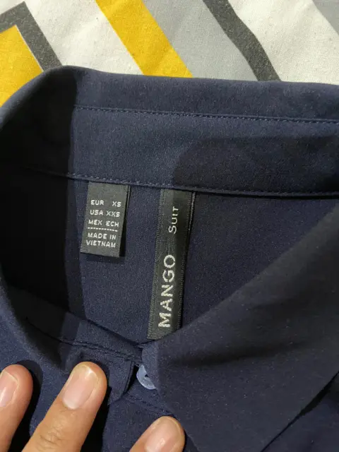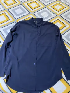 Camisa marca mango suit color azul marino talla Xs, trae todos los botones y es un poco más larga de lo normal, tela muy suave.