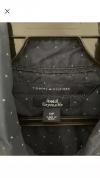 La tela estira un poco por lo que se adapta a tu cuerpo. Es de la marca Tommy Hilfiger, por lo que a pesar de su uso se nota la buena calidad