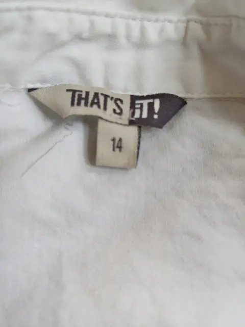 Camisa Blanca. Camisa con botones, color blanco, manga larga, con estampado en color negro con la frase "I'm Over It" y frase en la parte trasera en la esquina inferior derecha "Girls Over Boys", Marca That's It, talla 14 en niña, que a una talla chica (s) en adulto.