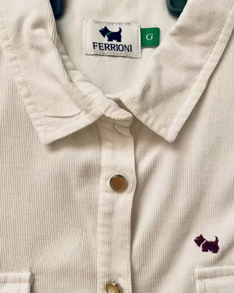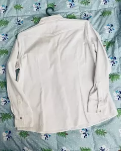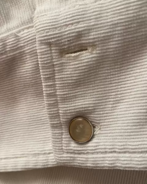 Camisa blanca de pana. Original y sin desgaste. Tiene el detalle de un botón de la manga que esta rayado, de ahí en fuera está como nueva. Calentita y muy combinable.