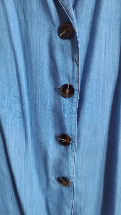 Hermosa camisa color mezclilla, la tela es suave y fresca, es una mezclilla muy muy delgada y con movimiento, puedes usarla abierta o cerrada. Hermoso corte redondo. Talla L. Sin detalles.Hombro. 39 cmAxila. 52 cmAncho. 54 cmLargo. 64 cm
