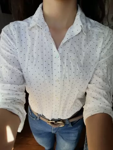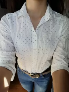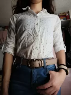 Camisa con manga ajustable, puede usarse con manga larga o a 3/4. Tela ligera.El diseño es blanco con corazones pequeños negros.Tiene un pequeño detalle casi no se nota, se muestra en fotos