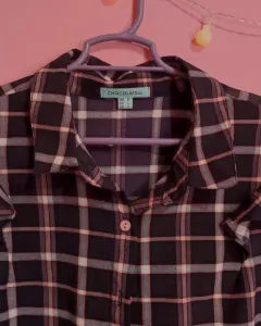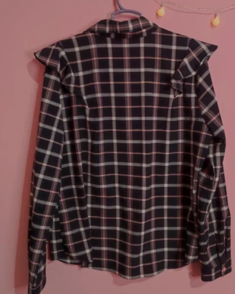 Camisa de cuadros manga larga en color rosita y azul obscuro, es de tela delgada y fresca talla L.