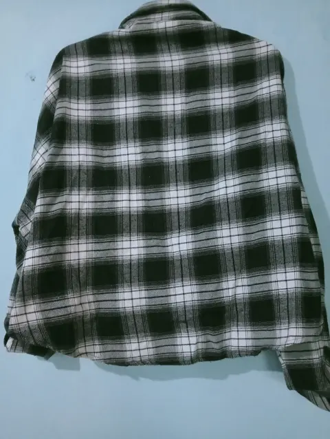 Camisa de cuadros, de color blanco, gris y negro de manga larga y abotonada Talla S EU 36 US 4Shein