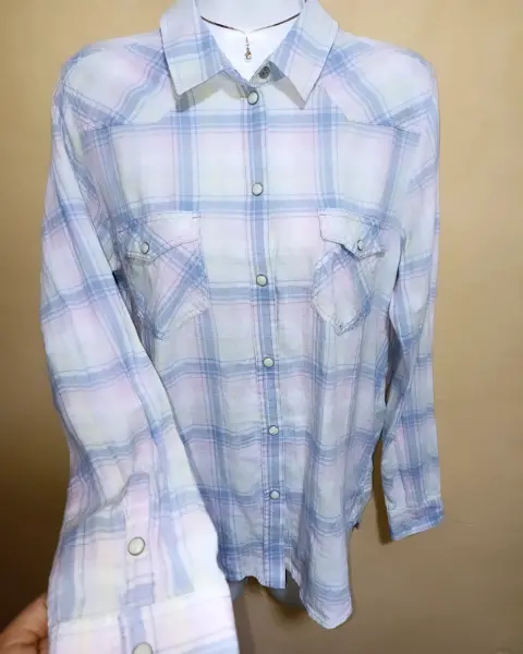 Hermosa camisa de cuadros colores pastel 😍 , las fotos no le hacen justicia, está totalmente nueva con su etiqueta original Talla M (no estira)