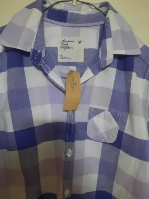 Camisa american eagle de cuadros morados, talla 4, nueva con etiqueta, entrega inmediata