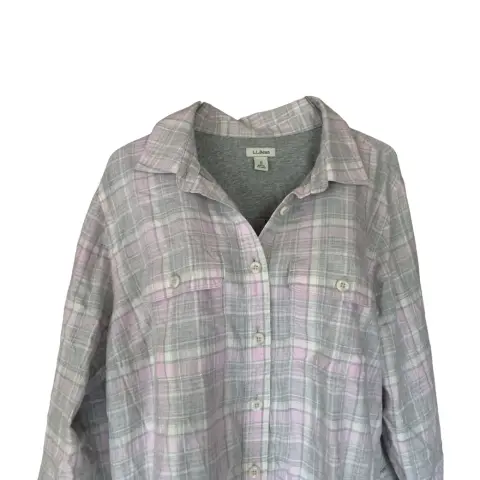 Camisa de cuadros rosa mujer camisas L L Bean. Camisa gris de cuadros con rosa, con forro. Modelo de cuello clásico con botones al frente y canesú en la espalda. Bolsillos superiores con solapa y botón. Mangas largas con botones en los puños.100% algodón