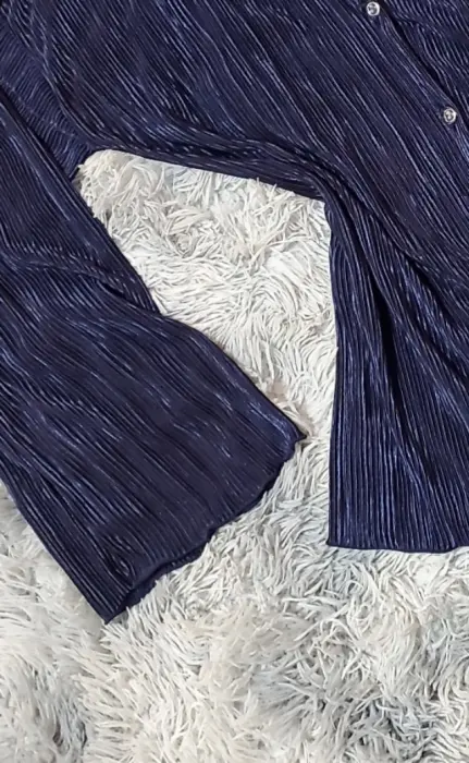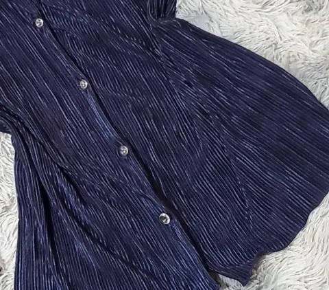 Camisa de dama. Camisa de dama azul marino de botones, blusa plisada, la tela no se arruga, tela muy lisa y ligera, puede usarse tanto en invierno como en verano