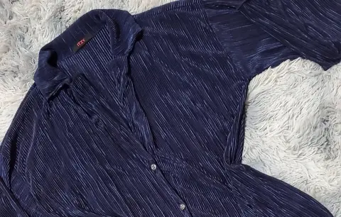 Camisa de dama azul marino de botones, blusa plisada, la tela no se arruga, tela muy lisa y ligera, puede usarse tanto en invierno como en verano
