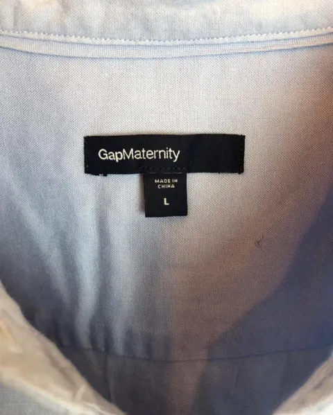 Camisa de Maternidad GAP. Elegante camisa para esa linda época de embarazo, es de manga larga en tono azul claro.