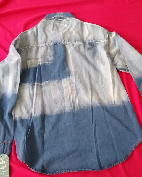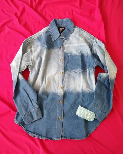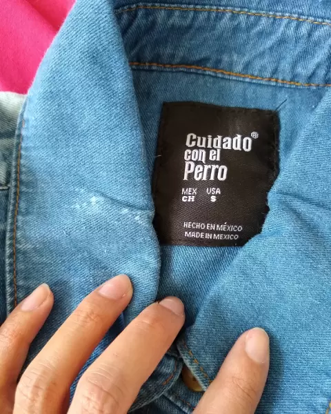 Camisa de mezclilla marca Cuidado con el Perro, nueva con etiqueta, talla CH.Se puede poner sobre otras blusas y se ve bonita, la mezclilla es ligera.