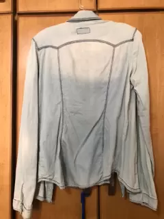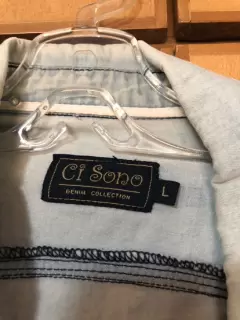 Bella camisa de mezclilla talla l,Juvenil,’creo queda mejor a talla m, con costuras súper favorecedoras. Marca ci sono