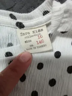 Camisa de niña. Camisa blanca con puntitos negros talla 10 de Zara, no sé plancha y es. Muy cómoda. Se ve elegante y coqueta.