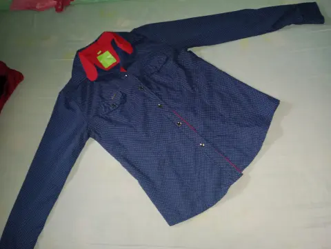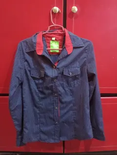 Camisa de vestir dama. Una sola puesta! Camisa de vestir para dama talla M, color azul con rojo, se plancha