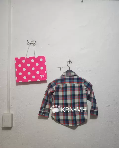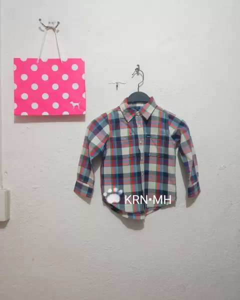 Bonita camisa para niño de cuadros talla 4, sólo tiene una puesta. La camisa está súper bonita.