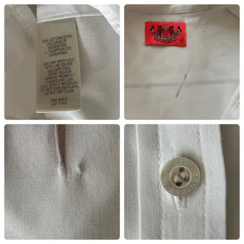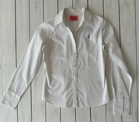 Camisa Juicy Couture. Camisa 100% algodón, manga larga, tiene pinzas que dan forma a la cintura, los detalles se ven en fotos. No es stretch. Talla: XXS o XSMedidas: 36 cm hombros, 44 cm axila y 58 cm largo.