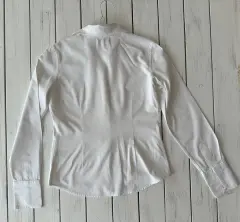 Camisa 100% algodón, manga larga, tiene pinzas que dan forma a la cintura, los detalles se ven en fotos. No es stretch. Talla: XXS o XSMedidas: 36 cm hombros, 44 cm axila y 58 cm largo.