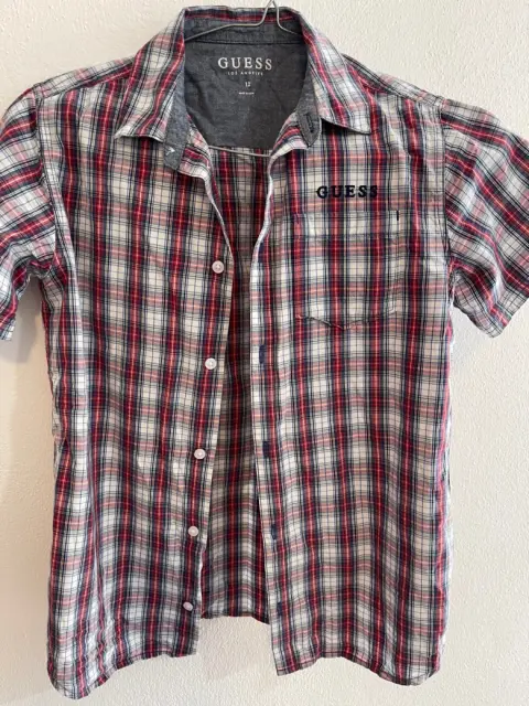 Camisa manga corta de cuadros , Guess, talla 12, poco uso, sin detalles