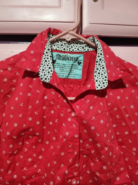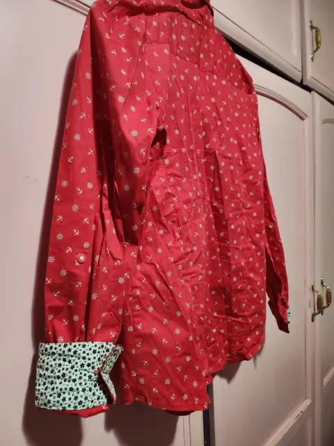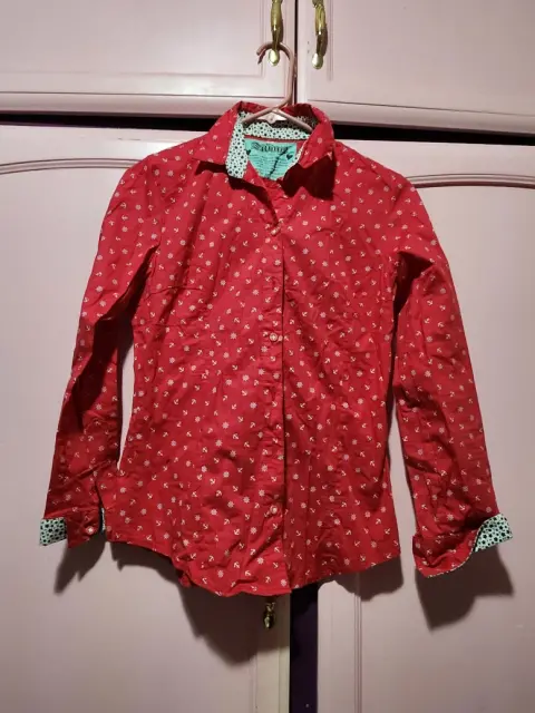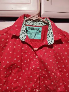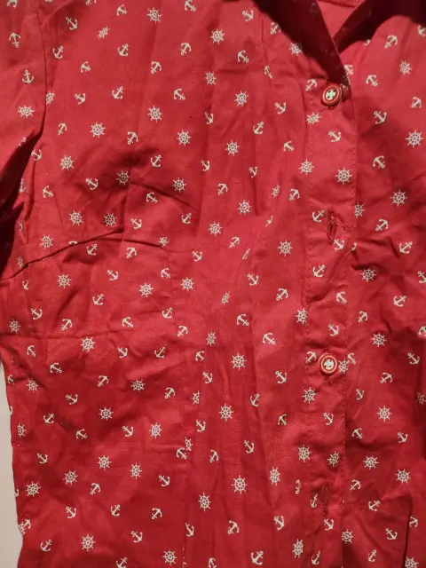 Camisa, roja manga larga, con estampado de anclas, es strech ajusta al cuerpo, se ve bien fajada o suelta