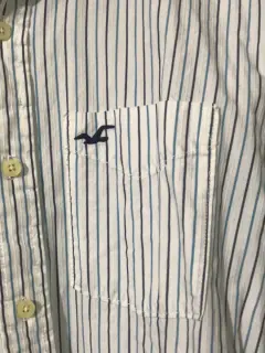 Camisa manga larga de rayas. Camisa de manga larga Color blanco con rayas azules Sin detallesMarca Hollister Talla M