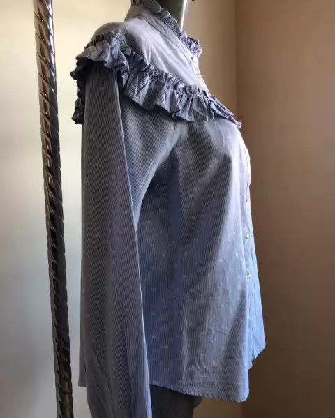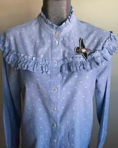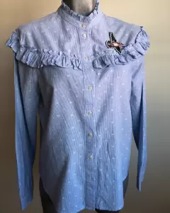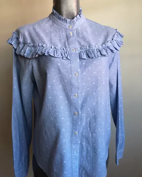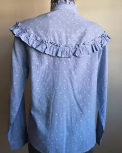 HERMOSA CAMISA MARCA PETITE STUDIO, MANGA LARGA COLOR AZUL CELESTE Y DETALLES EN LUNARES BLANCOS. DETALLE PLISADOS EN CUELLO, PECHO Y PUÑOS. TALLA CHICA. NO INCLUYE PRENDEDOR. ENVÍO PRENDA SANITIZADA, USO MATERIALES RECICLADOS GRACIAS POR TU COMPRENSIÓN.